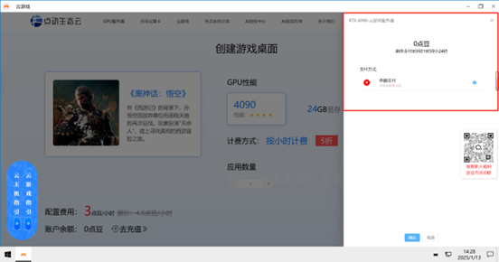 登录同一个账号之后,直接就可以查看4090云游戏服务器,直接点击进入桌面。